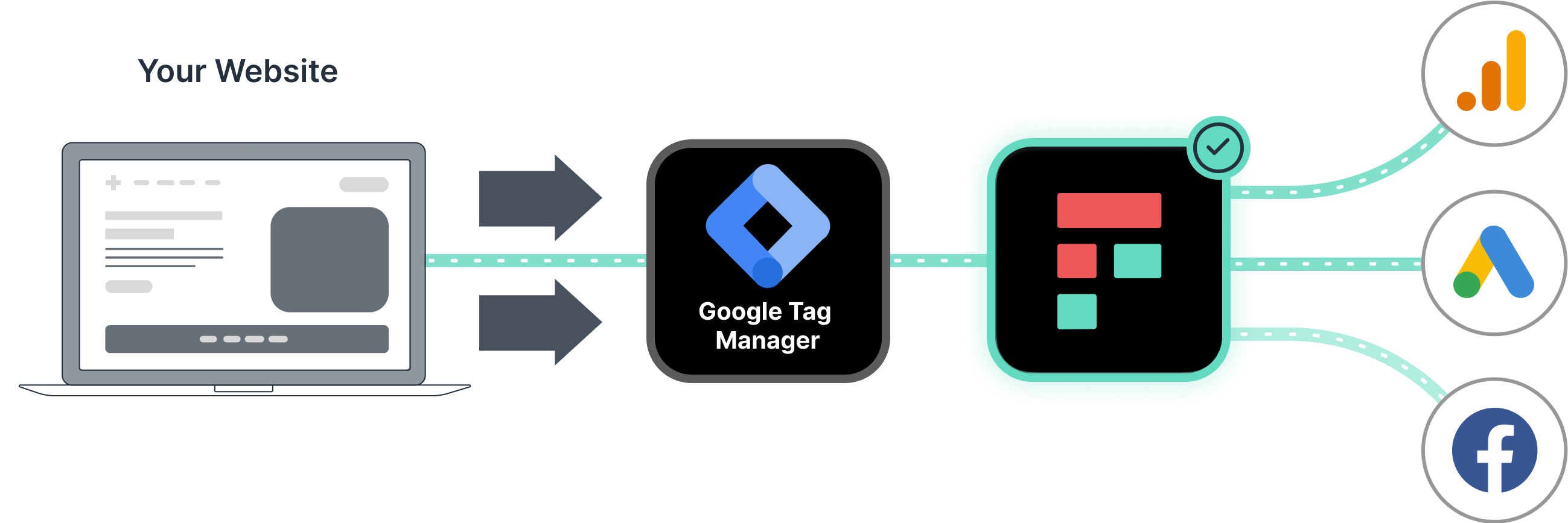 Freshpaint makes it easy to take your existing tags from Google Tag Manager and route them through Freshpaint instead of directly to tools like Facebook and Google Analytics. This allows teams to implement Freshpaint in two weeks or less.