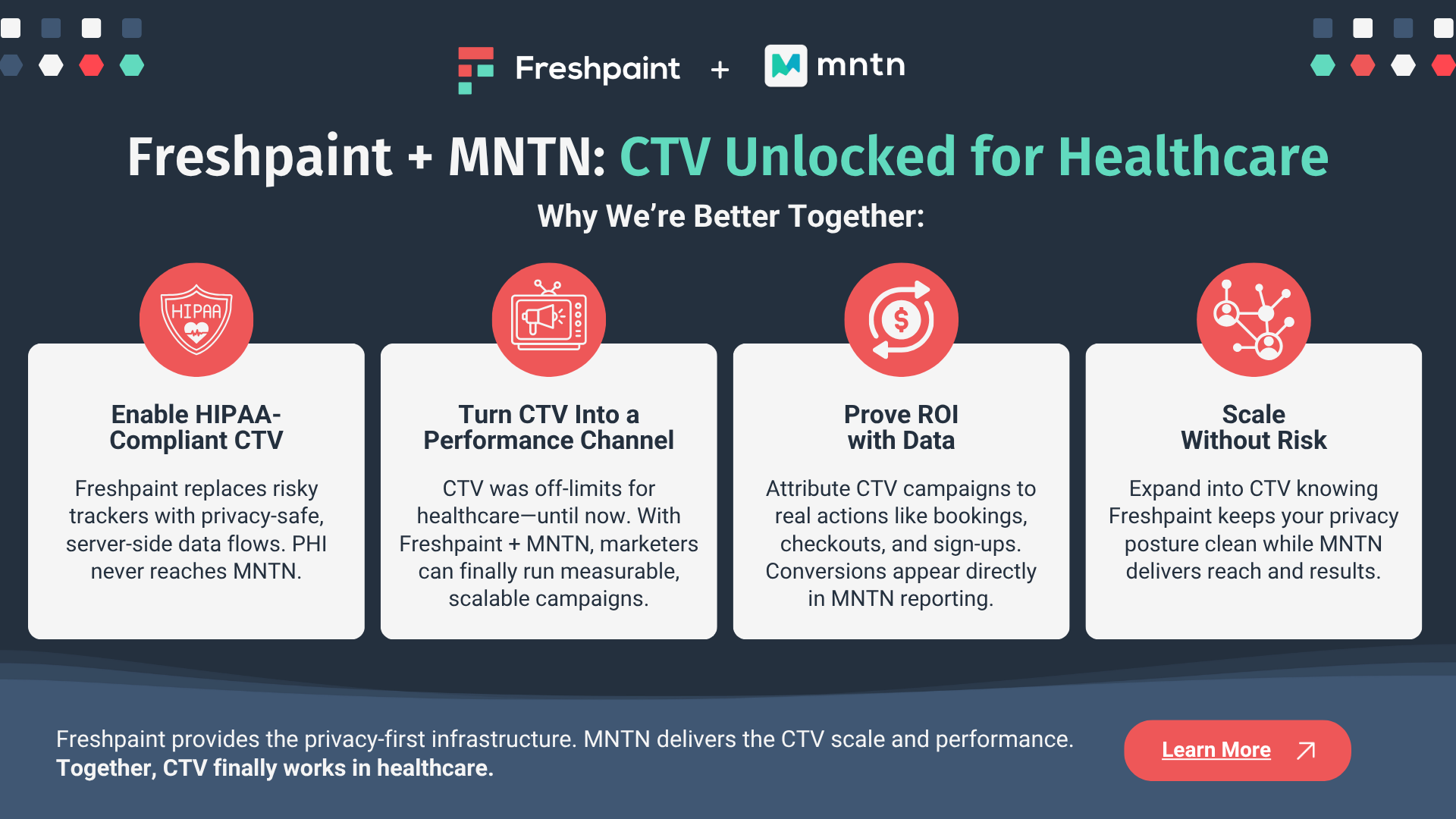 Our new integration with MNTN exists to break that cycle by turning privacy into a performance advantage and making Connected TV a measurable, compliant growth channel for healthcare.