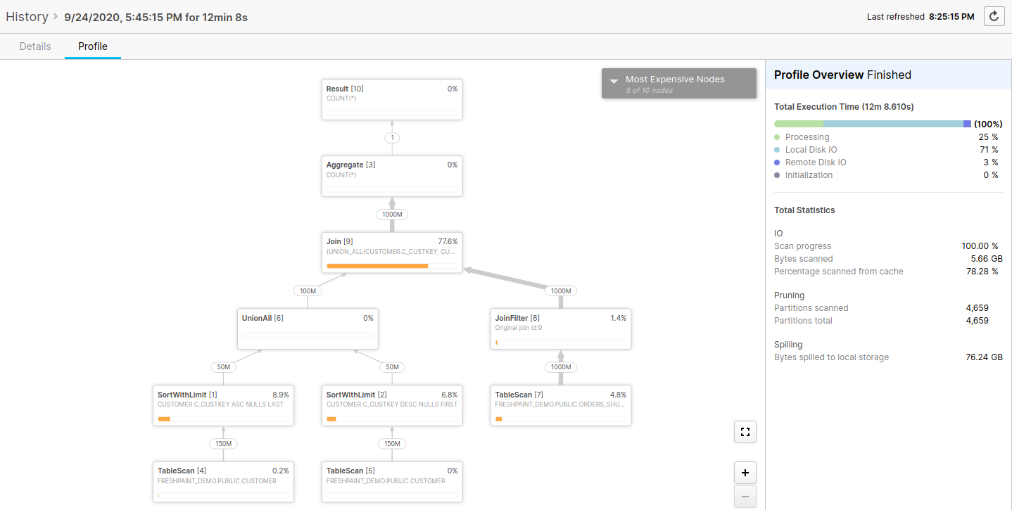 The query profiler shows you the query plan for your query, how much time was spent in each part of the query plan, and how much data was processed by each part of the query plan. This information is invaluable for optimizing slow queries and Snowflake automatically records this information for you.