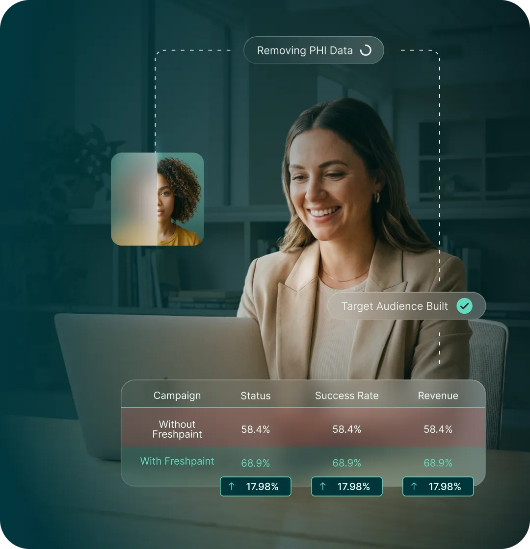 A single Freshpaint pixel replaces every third-party script and tracker. Sensitive health data is automatically filtered before anything leaves your environment. No manual scrubbing, no IT ticket, no compliance review for every new tag.